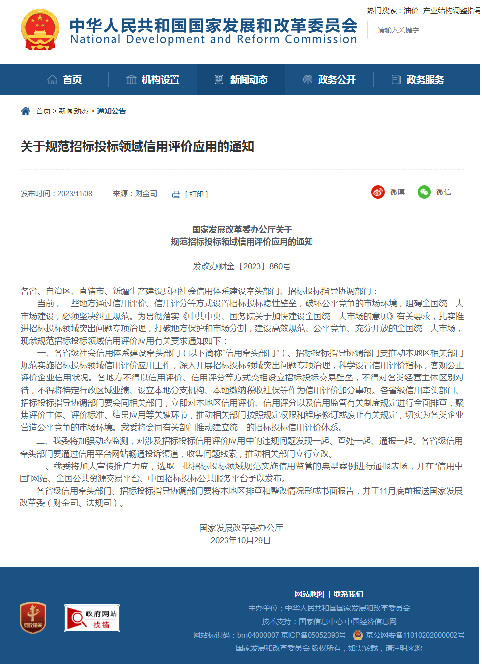 各省級社會信用體系建設(shè)牽頭部門(以下簡稱“信用牽頭部門”)、招標(biāo)投標(biāo)指導(dǎo)協(xié)調(diào)部門要推動本地區(qū)相關(guān)部門規(guī)范實施招標(biāo)投標(biāo)領(lǐng)域信用評價應(yīng)用工作,深入開展招標(biāo)投標(biāo)領(lǐng)域突出問題專項治理,科學(xué)設(shè)置信用評價指標(biāo),客觀公正評價企業(yè)信用狀況。各地方不得以信用評價、信用評分等方式變相設(shè)立招標(biāo)投標(biāo)交易壁壘,不得對各類經(jīng)營主體區(qū)別對待,不得將特定行政區(qū)域業(yè)績、設(shè)立本地分支機構(gòu)、本地繳納稅收社保等作為信用評價加分事項。各省級信用牽頭部門、招標(biāo)投標(biāo)指導(dǎo)協(xié)調(diào)部門要會同相關(guān)部門,立即對本地區(qū)信用評價、信用評分以及信用監(jiān)管有關(guān)制度規(guī)定進行全面排查,聚焦評價主體、評價標(biāo)準(zhǔn)、結(jié)果應(yīng)用等關(guān)鍵環(huán)節(jié),推動相關(guān)部門按照規(guī)定權(quán)限和程序修訂或廢止有關(guān)規(guī)定,切實為各類企業(yè)營造公平競爭的市場環(huán)境。我委將會同有關(guān)部門推動建立統(tǒng)一的招標(biāo)投標(biāo)信用評價體系。