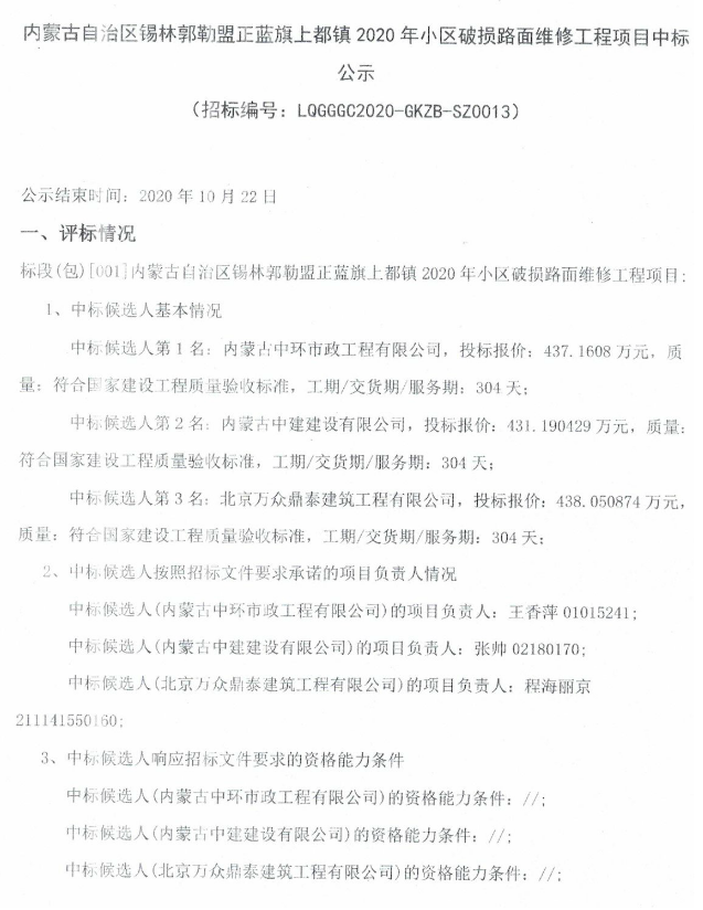 內(nèi)蒙古自治區(qū)錫林郭勒盟正藍(lán)旗上都鎮(zhèn)2020年小區(qū)破損路面維修工程